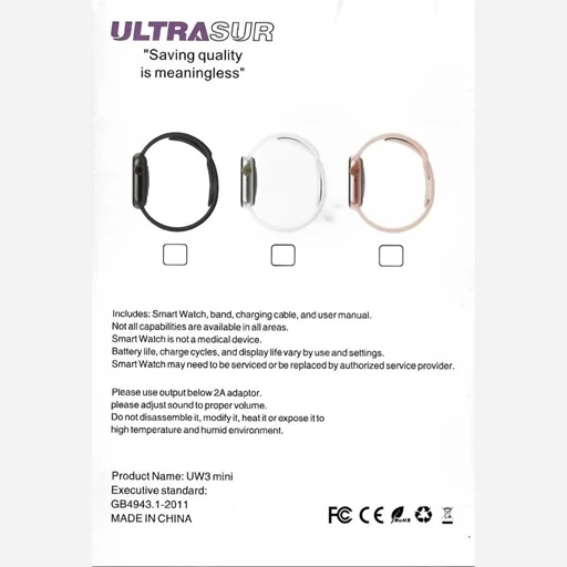 ساعت هوشمند اولتراسور مدل U-W3 mini یک گجت مدرن و کارآمد با طراحی مینیمال و ظاهری زیباست که به‌راحتی برای استفاده روزمره و ورزشی مناسب می‌باشد. این ساعت با صفحه‌نمایش رنگی و باکیفیت خود، اطلاعات مورد نیاز کاربر مانند ساعت، تعداد قدم‌ها، میزان کالری مصرفی و وضعیت سلامتی را به‌وضوح نمایش می‌دهد. جنس بدنه مقاوم و وزن سبک این مدل، تجربه کاربری راحت و لذت‌بخشی را به ارمغان می‌آورد. همچنین بندهای متنوع و قابل تعویض این ساعت، به کاربران این امکان را می‌دهد که متناسب با سلیقه و موقعیت خود، ظاهر ساعت را تغییر دهند.