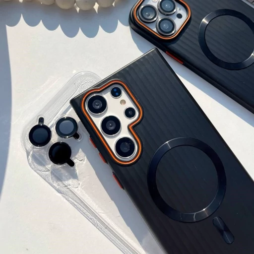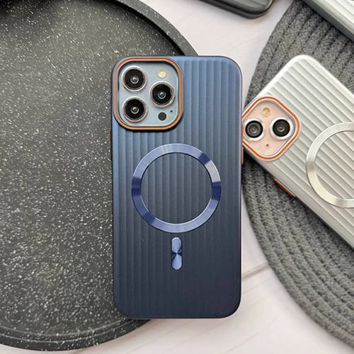 کاور 15پرومکس قاب طرح کرکره‌ای مگ سیف با طراحی خاص و خوش‌دست، دارای استند فلزی و گلس لنز ست؛ انتخابی شیک، مقاوم و کاربردی برای محافظت کامل از گوشی.